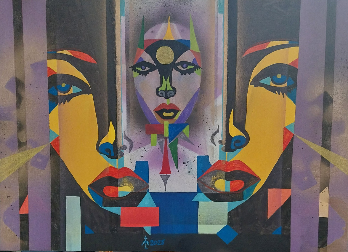 El universo de las mujeres, el "planeta" central en la constelación de la vida de cada persona: mujer, madre, inspiración, sueño, sentimientos biopolares entrelazados. Pintado con acrílicos sobre cartón entoile (lienzo).